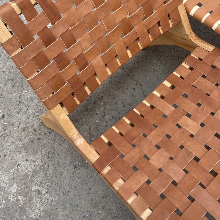 Fauteuil SAMA en bois de noyer et cuir tressé marron