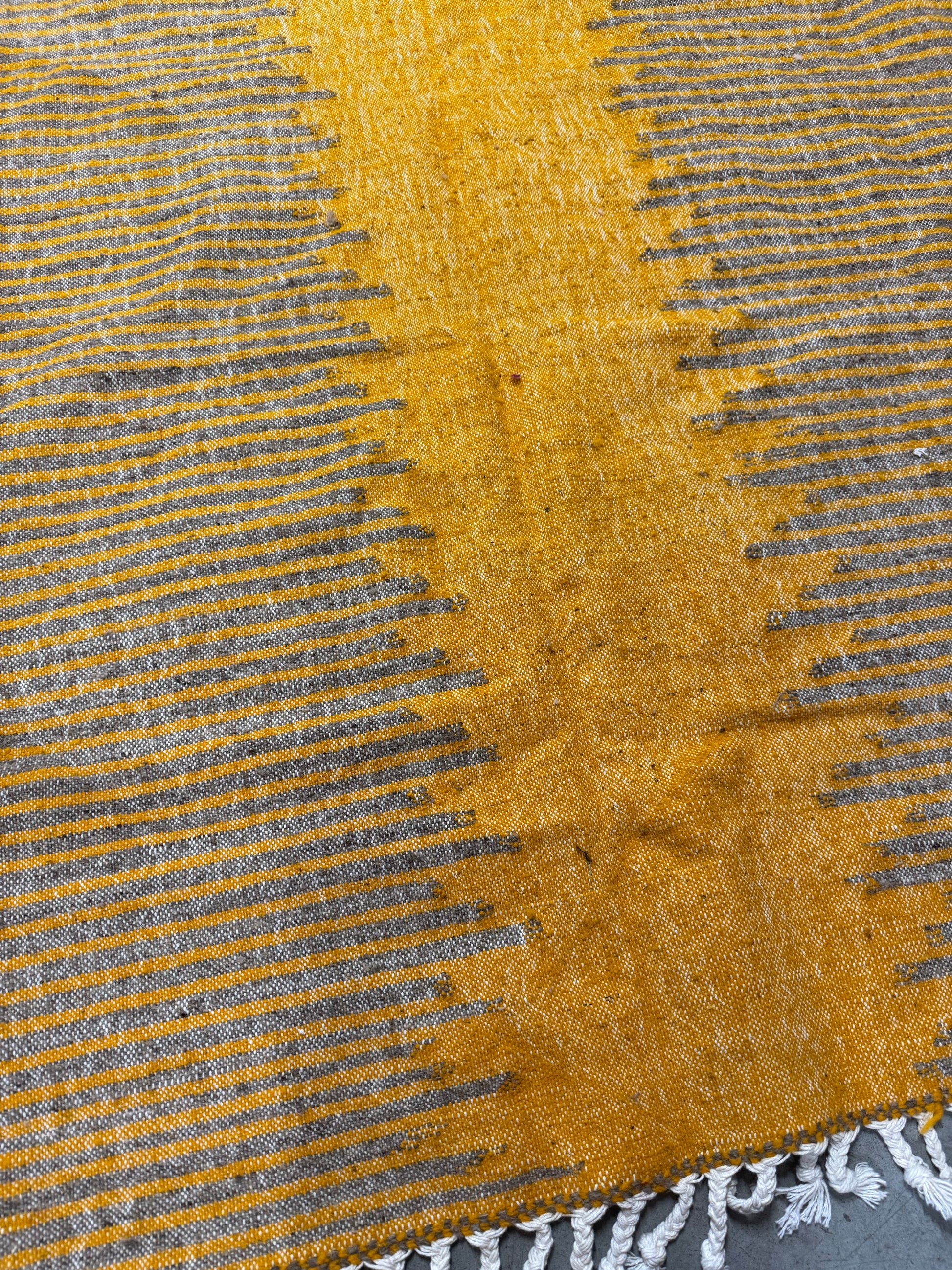 Apportez du caractère et de l’authenticité à votre intérieur avec ce tapis Zanafi d’exception, entièrement tissé à la main par les femmes berbères du Moyen Atlas. Véritable œuvre artisanale, il se distingue par son tissage “Kilim” raffiné, qui exige une maîtrise technique remarquable et confère au tapis un aspect unique et élégant.